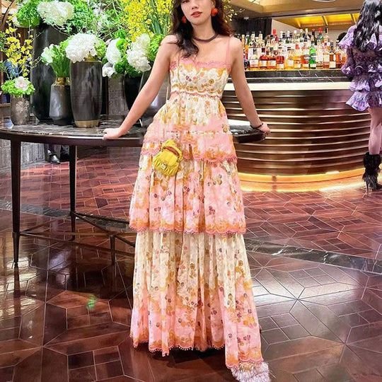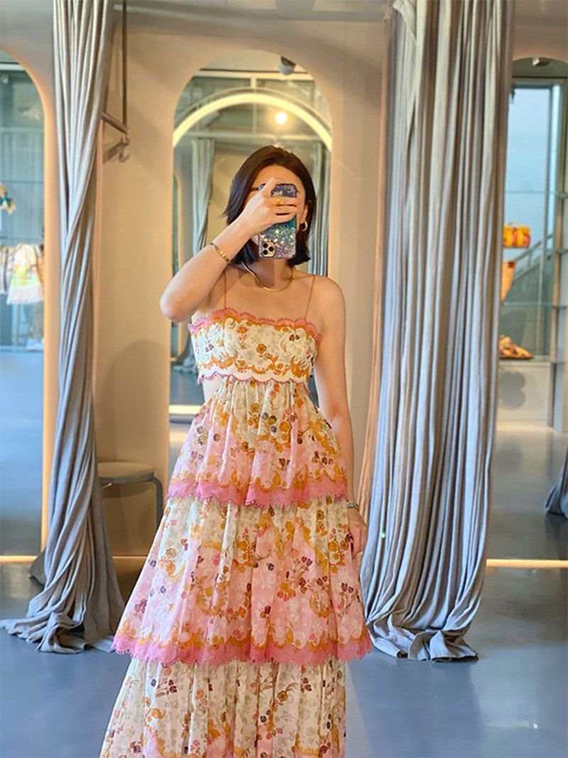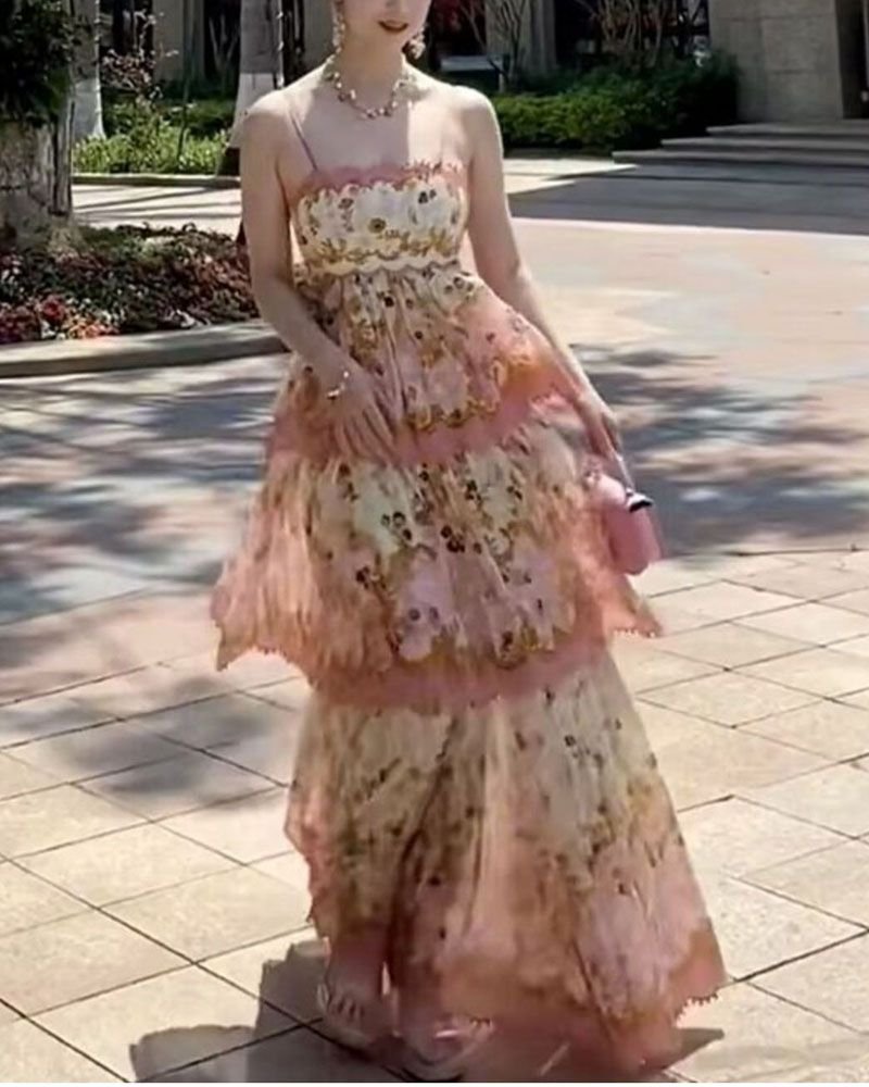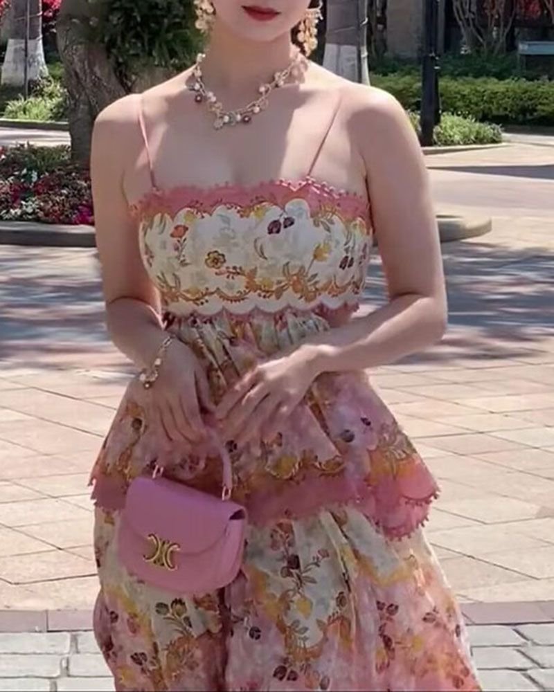 Design: Ruffled, Tiered, A Line, Layered, Frill, Slip Spaghetti Strap, Midi Length and Trendy Style.