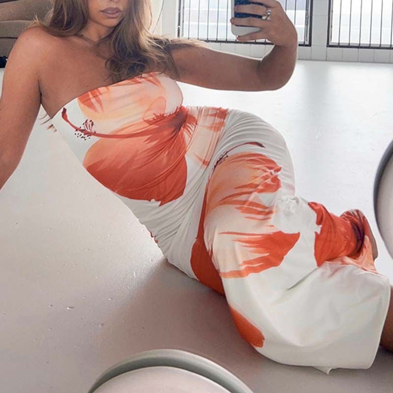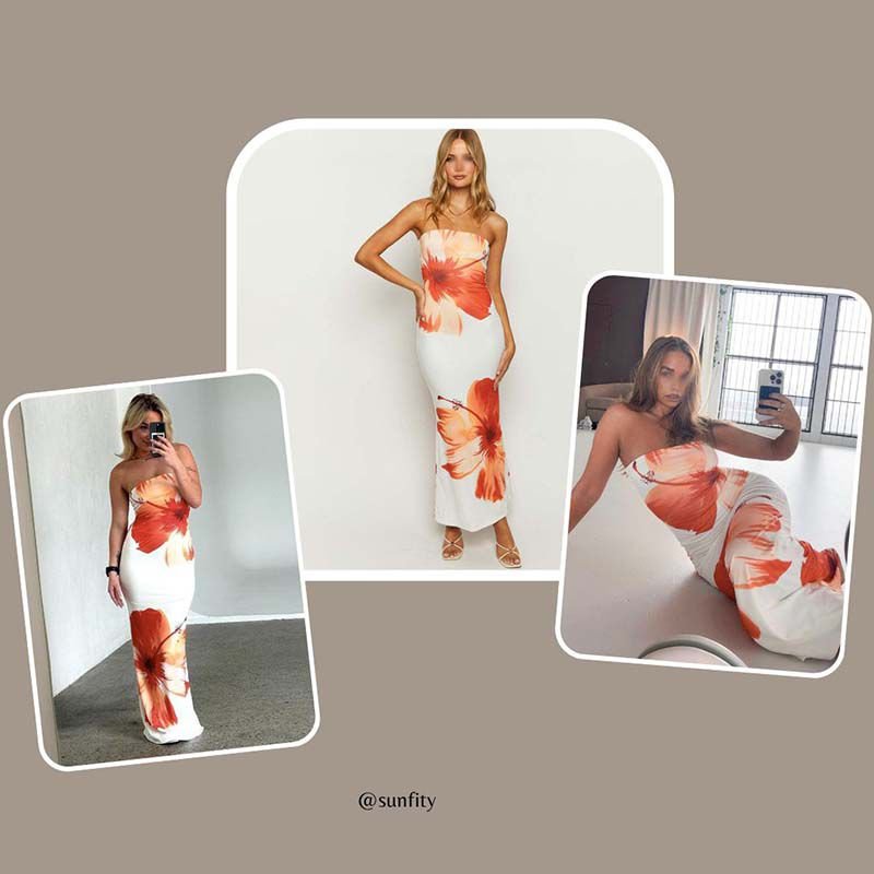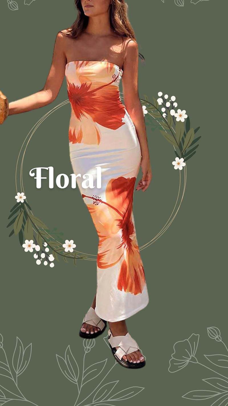 [if !supportLists]· [endif]This elegant satin midi dress boasts an abstract flowery design and a fitted elastic back. The back features providing a smooth and beautiful appearance for your waist and butt. Its strapless design exudes a charming and alluring look, perfect for date nights, clubwear, parties, or even streetstyle. This versatile floral printed bandeau dress is also a great choice for trips, first dates, cocktails, and dances.